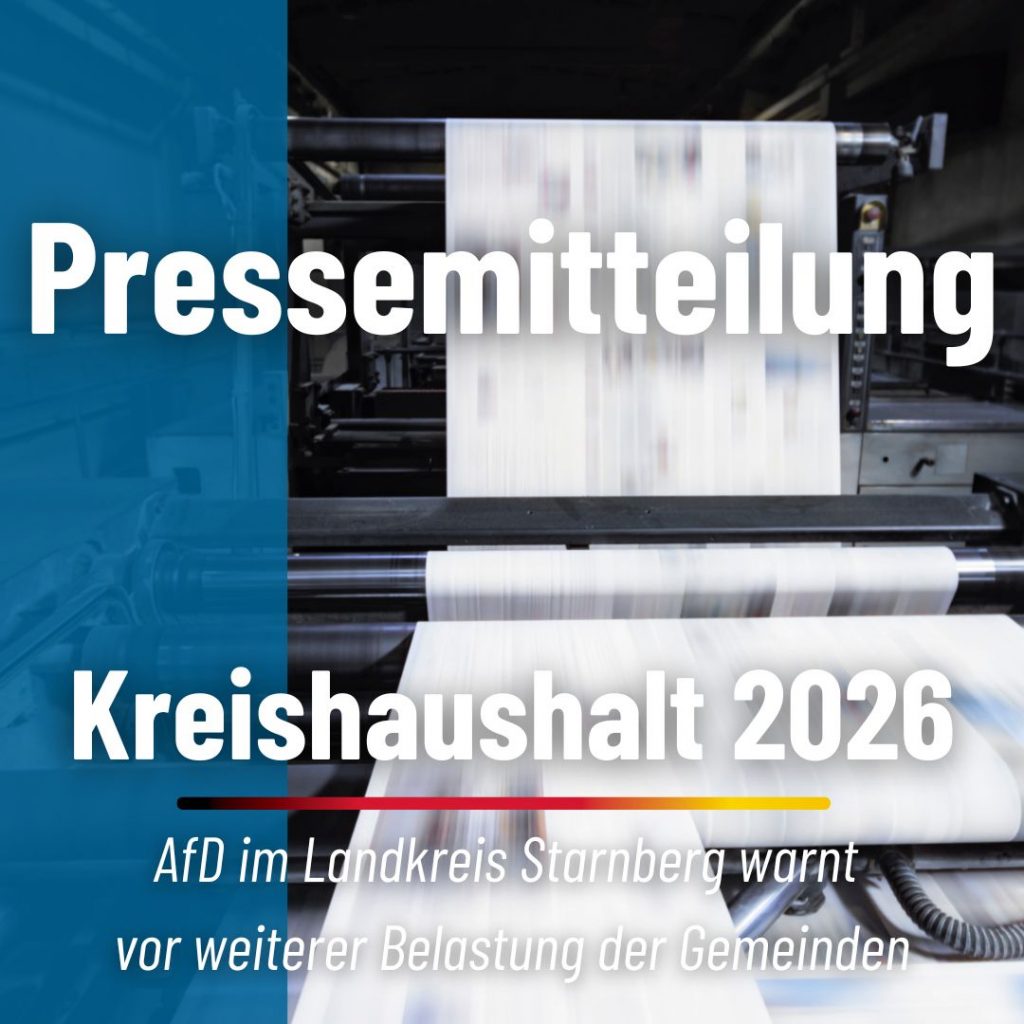 Am 15. Dezember befasste sich der Kreistag mit der Aufstellung des Haushalts- und Finanzplanes 2026, der Kreisumlage sowie über- und außerplanmäßigen Ausgaben für 2025 und der Bildung von Haushaltsresten. Aus Sicht der AfD Starnberg steht die Sitzung sinnbildlich für eine Finanzpolitik, die Ausgaben immer weiter ausdehnt und die Zeche den Gemeinden präsentiert.