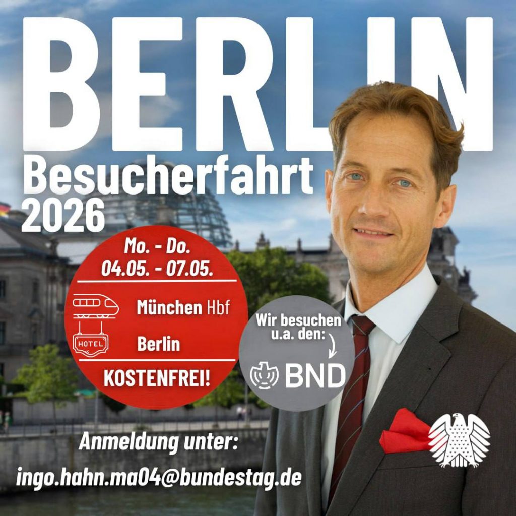 👉 ingo.hahn.ma04@bundestag.de⚠️ Wichtig: Teilnehmerzahl begrenzt – bitte zeitnah anmelden!