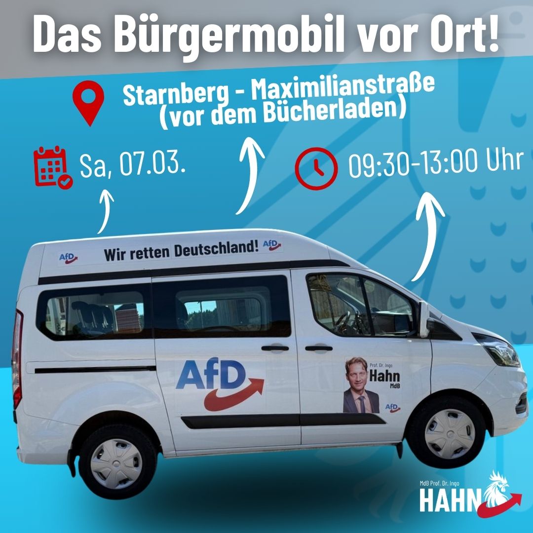 Bürgermobil kommt nach Starnberg am 07. März von 09:30 - 13:00 Uhr. Wo? Maximilianstraße (vor dem Bücherladen)